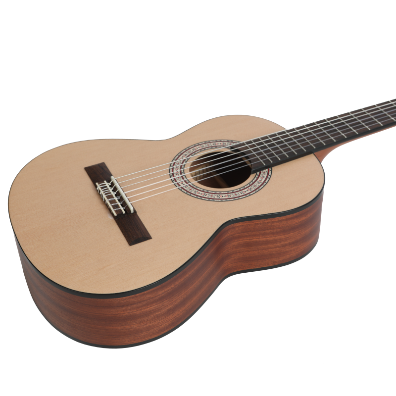 Our guitars have been designed with a smaller, thinner body, allowing beginners to sit more naturally, especially children , who often find themselves with an instrument whose 'standard' dimensions are a little overestimated!