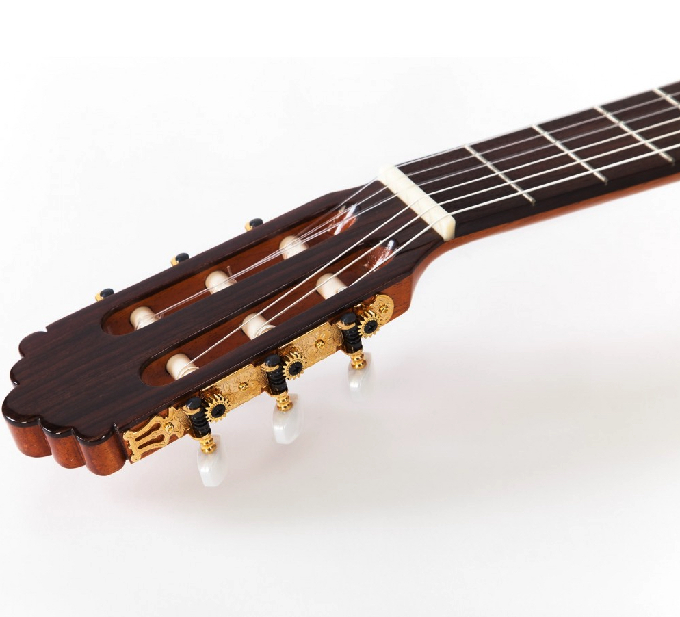 Selection of the woods of an exemplary rigor, crucial point of a good instrument... A high quality solid Canadian cedar table, for more warmth, roundness, combined with bone-in saddles (bridge and head) for more dynamics, balance of sound and striking harmonics...