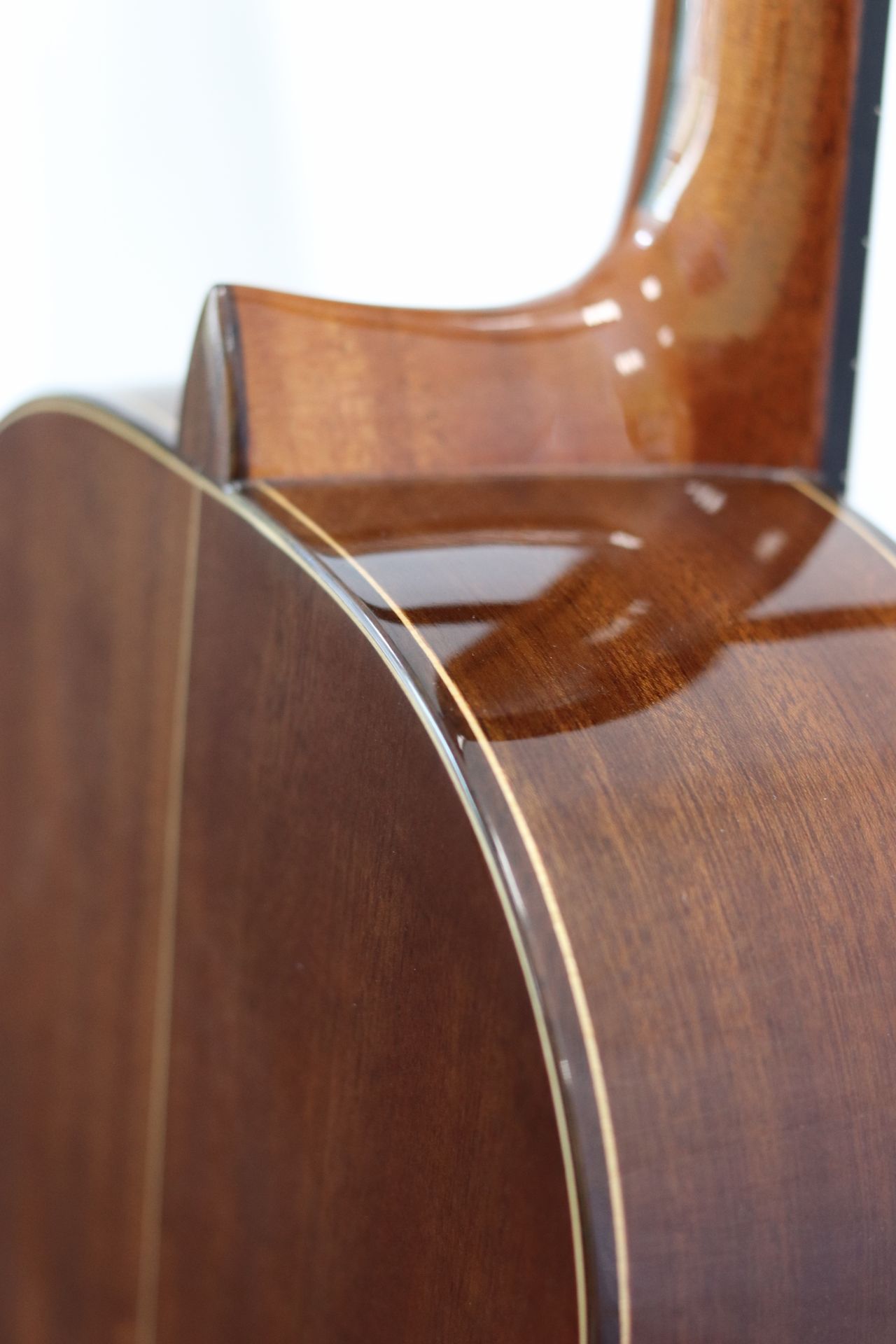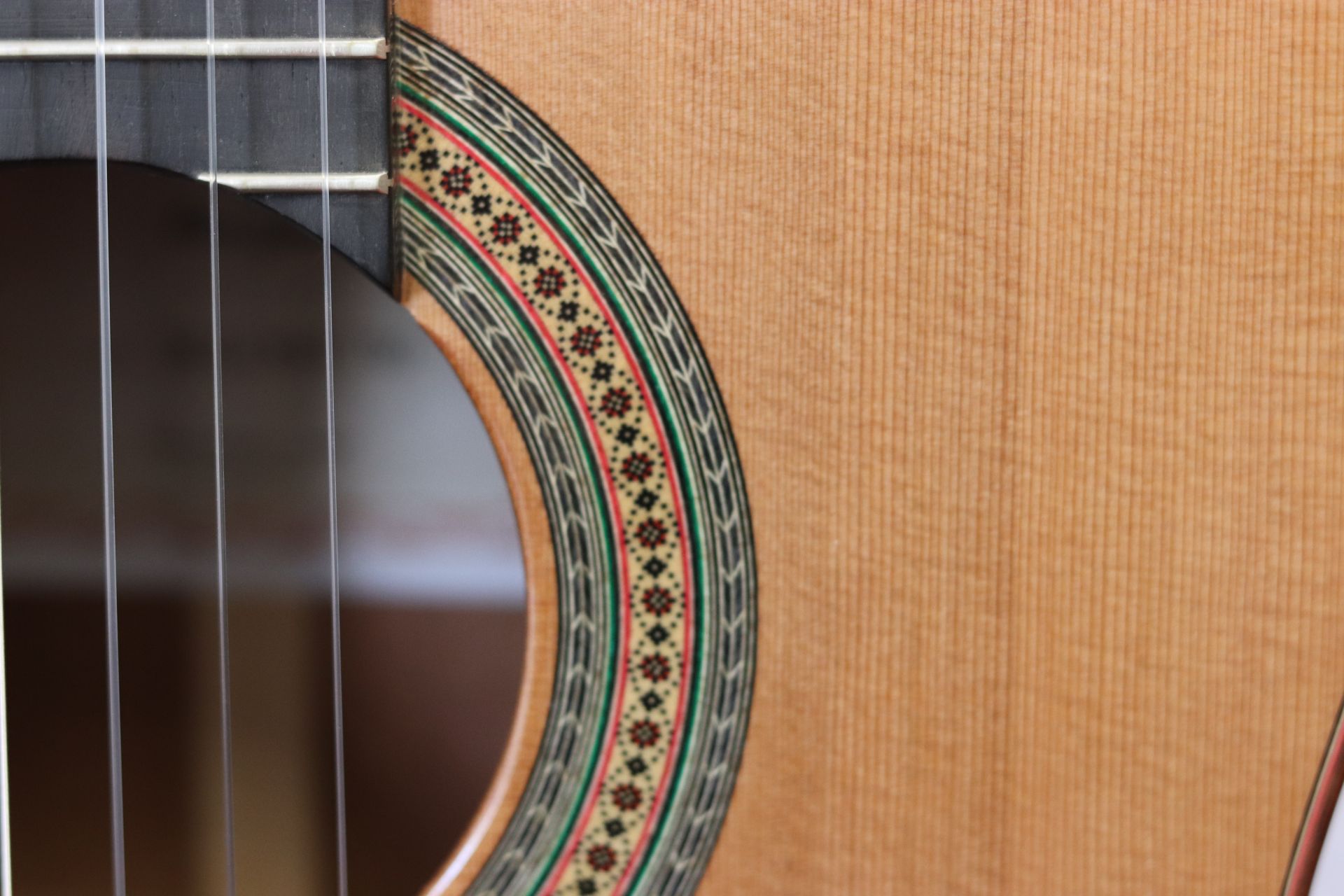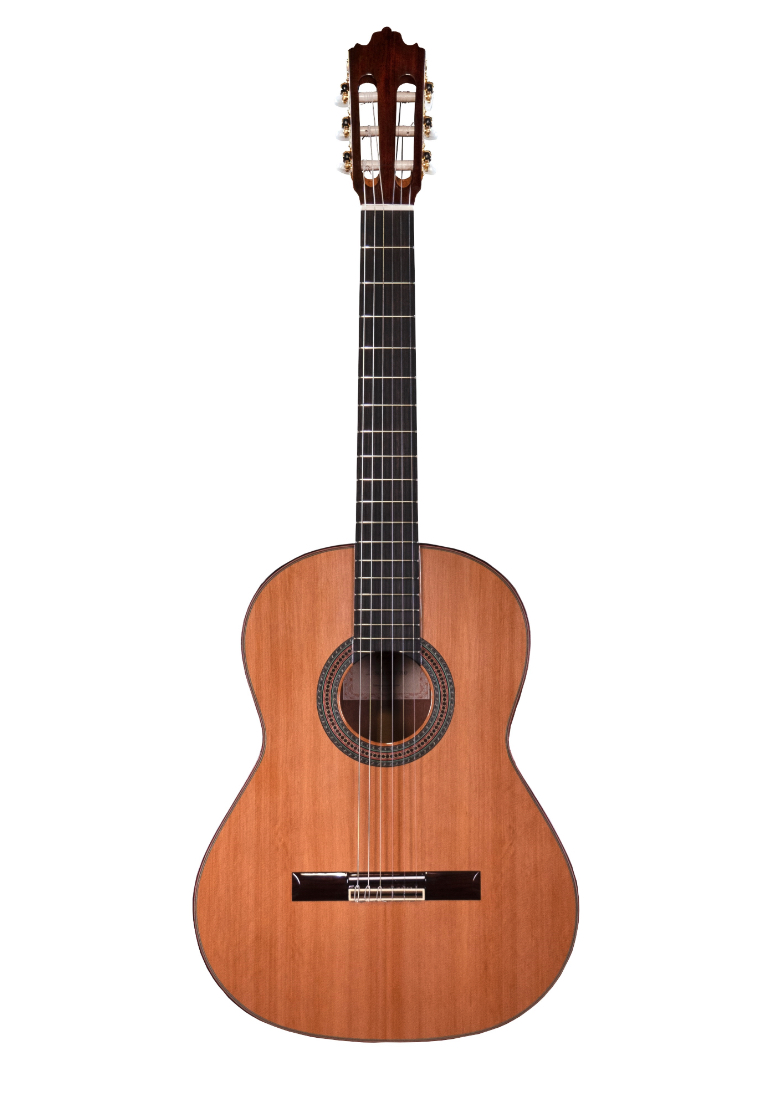 Solid African mahogany for the back and sides, an ebony fingerboard, and a solid Canadian cedar top selected from the drying stocks of MADERAS BARBER, Spain's leading specialist in luthier's wood, then stabilised in our workshops.