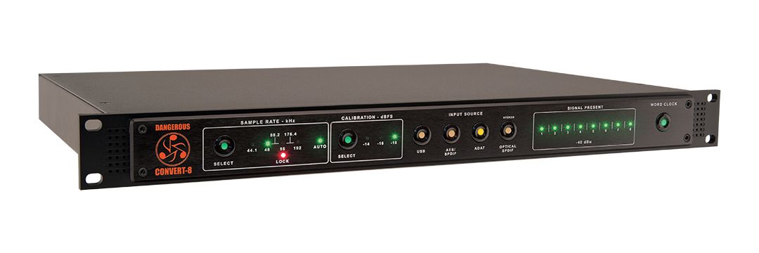 With industry-standard reference levels of -14, -16 and -18dBFS, you can recalibrate the Convert-8 with the push of a button. While many professional converters are only aligned at the factory, the Convert lets you move flexibly between different reference levels on the fly. Anyone who’s ever fumbled around behind a rack with a “tweeker tool” while a second person watches an external meter knows the special value of our front-panel calibration buttons, especially when there’s eight channels or more!