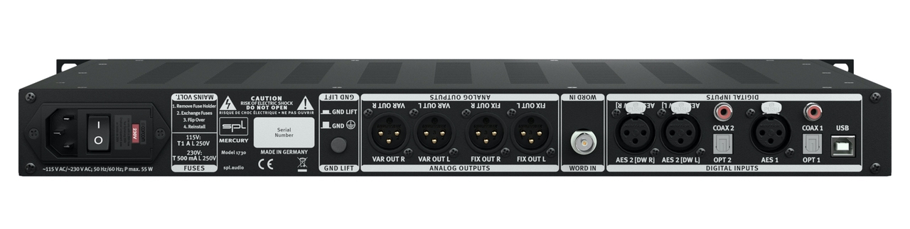 Mercury is the first mastering DA-converter in 120V technology. It offers seven digital stereo input sources, all of which can be synchronized with each other or with a word clock. The additional variable output qualifies Mercury as a monitor controller.