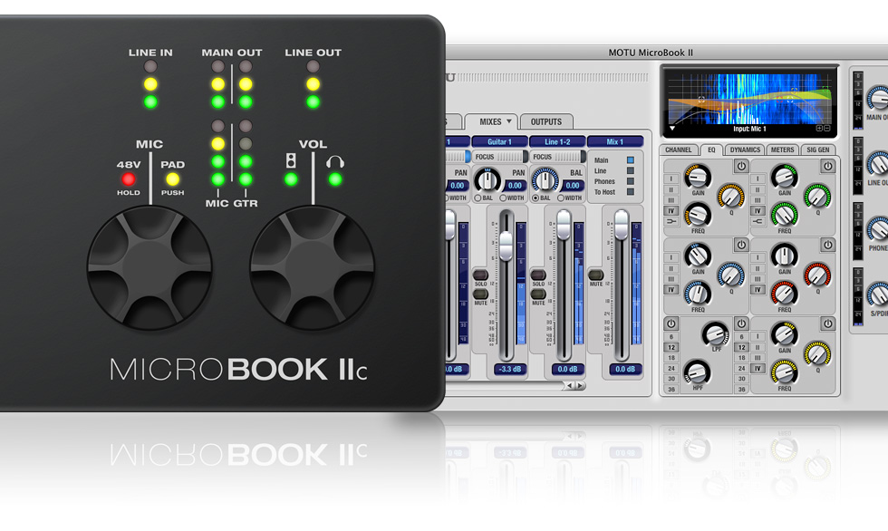 The MicroBook IIc is an impressively small 5.5 by 3.6 by 1.25 inches, which means that it slides easily into your backpack — or a large pocket. It also sits nicely next to your laptop or desktop computer. The MicroBook IIc has been engineered with MOTU’s renowned, award-winning audio interface technology, which delivers the uncompromising audio quality and rock-solid performance MOTU interfaces are known for worldwide. You can always record and mix with confidence, even in the most demanding professional recording situations, knowing that decades of engineering experience are behind you, every step of the way. The MicroBook IIc delivers measured audio specs that rival interfaces costing hundreds more.