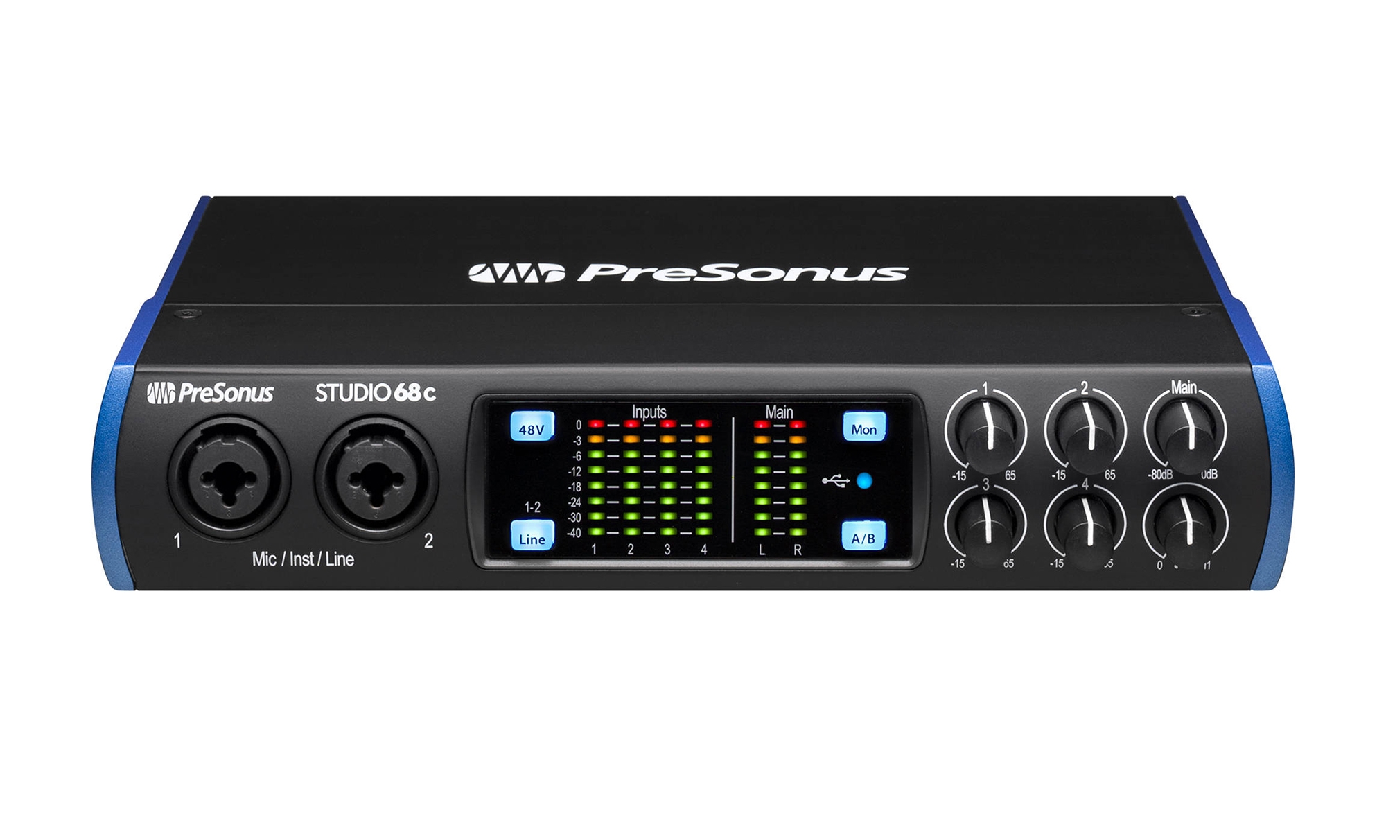 The Studio 68c operates at up to 192 kHz for ultra-high-definition recording and mixing. High-quality converters on every input and output and PreSonus’ professional-grade XMAX-L mic preamps capture complex musical harmonics smoothly and naturally, with no audible distortion.