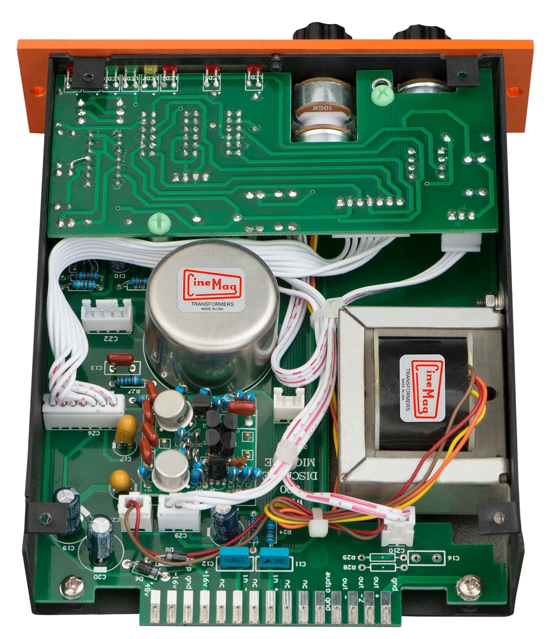- 2 Meg Ohm True HI-Z input on front panel. Sends instrument signal through entire circuit including both Cinemag Transformers and the discrete opamp. Great for guitars, bass, keyboards and other instruments that have a 1/4″ output jack.
