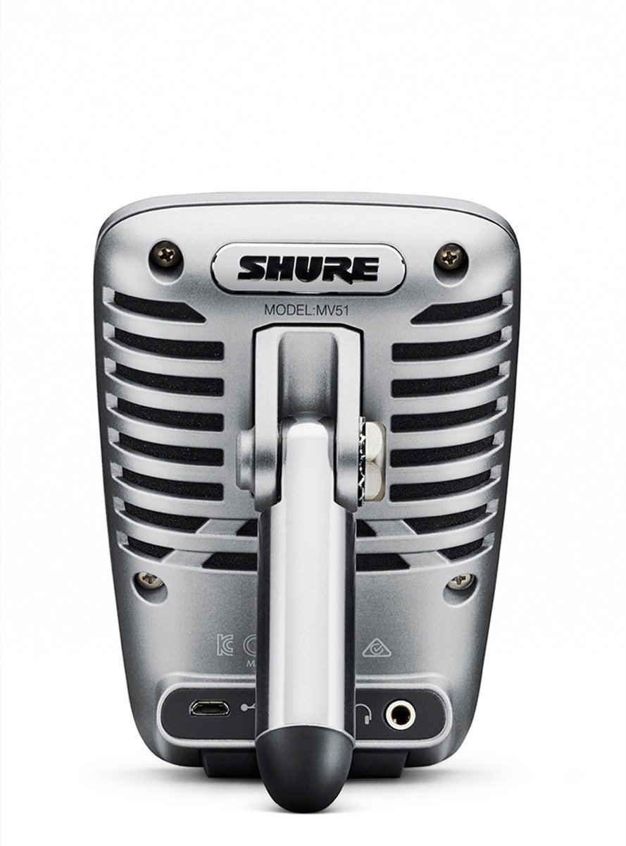 The MOTIV MV51 Digital Large-Diaphragm condenser microphone is specifically engineered for high fidelity audio capture, seamlessly integrating via iOS, Android, Mac and PC devices to provide studio-quality home recording and videoconferencing. The 1 inch capsule element provides unmatched audio results, which are easily monitored in real-time via the built in 3.5mm headphone output.