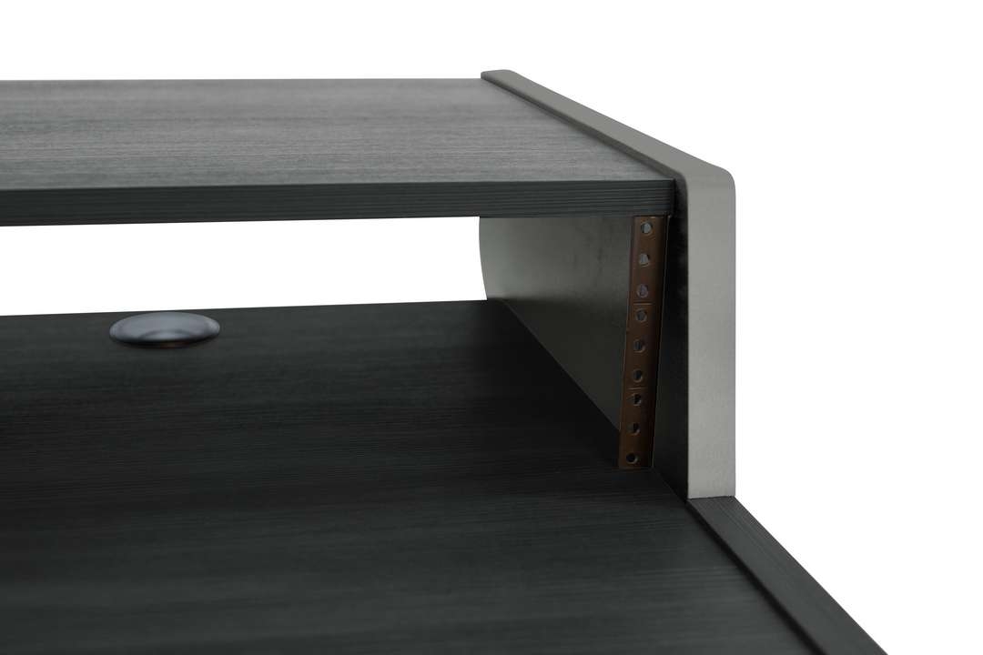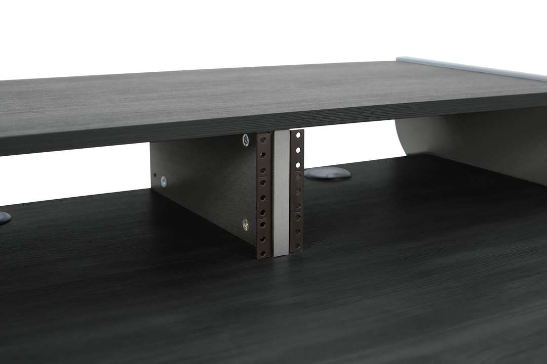 The top shelf above the racks allows you to set up your computer screen or even smaller monitor speakers. The convenient cable management keeps all your wires under control for that tidy, almost magical look and feel.