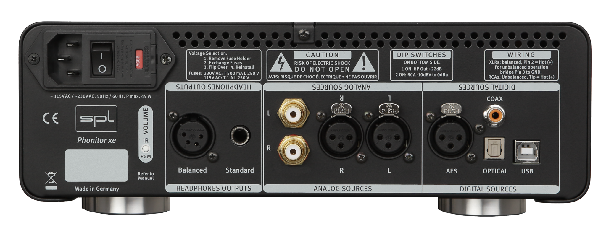 Phonitor xe accepts almost all audio connections. Balanced via XLR or unbalanced via RCA connectors.