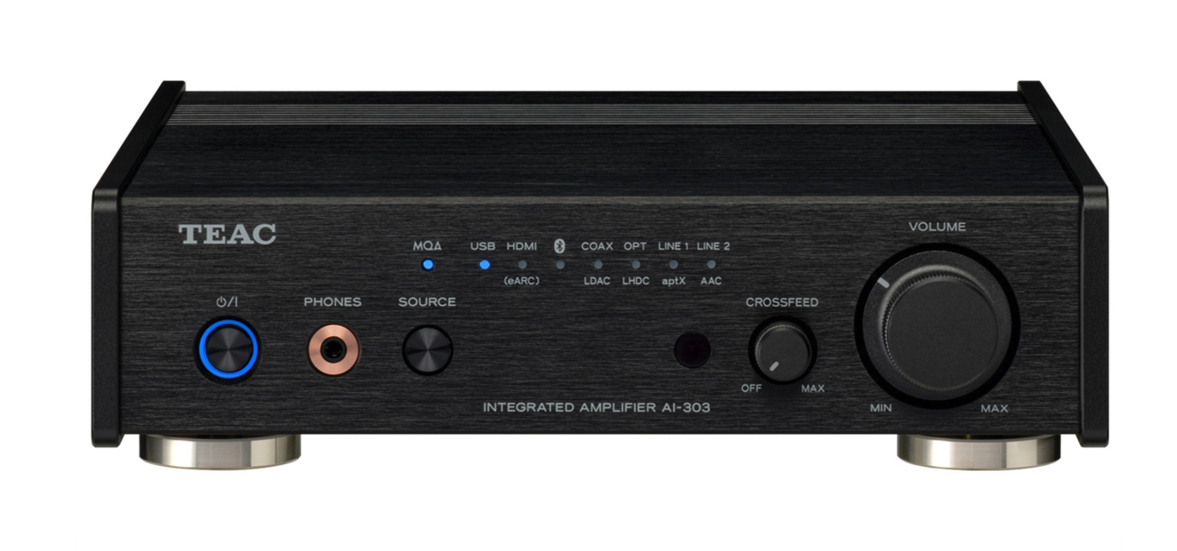 The AI-303 supports MQA full decoding to enjoy studio master quality sound, from any digital inputs USB-C, HDMI, Coaxial and Optical inputs from MQA streaming and MQA CD from CD player via digital connection.