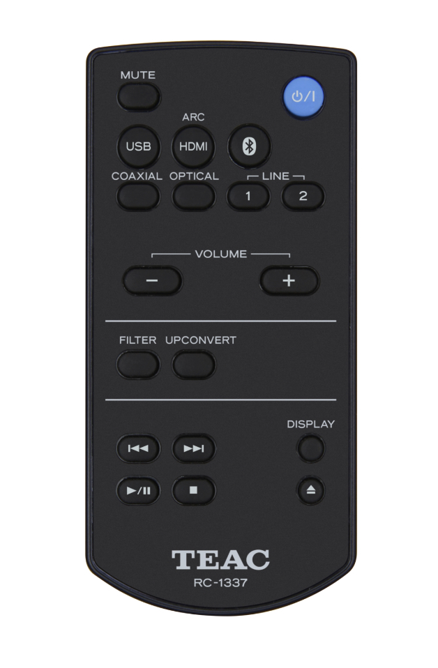 • Included accessories: Power cord, Remote control (RC-1337), AAA batteries × 2, User manual.