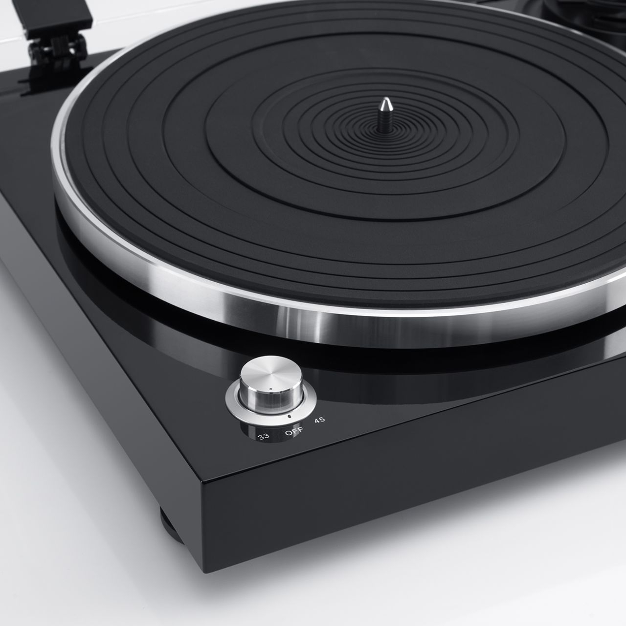 - Straight, weight-balanced tonearm with adjustable tracking force